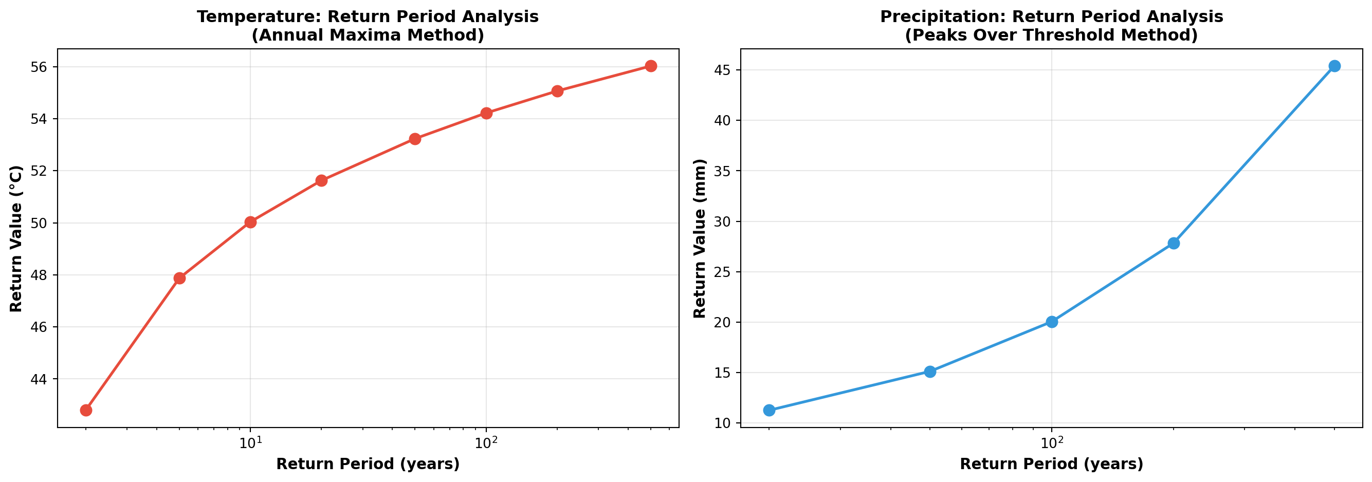 - **Return Period Analysis** - Extreme value theory (Block Maxima, Peaks Over Threshold)